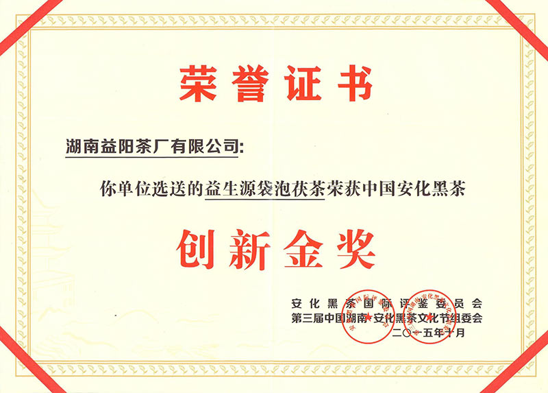 中國(guó)湖南黑茶文化節(jié)創(chuàng)新金獎(jiǎng)