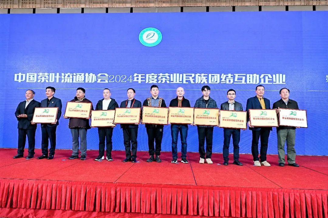 益陽(yáng)茶廠有限公司作為國(guó)家級(jí)非遺項(xiàng)目茯磚茶制作技藝的唯一傳承保護(hù)單位,茯磚茶國(guó)家標(biāo)準(zhǔn)的制訂單位、全國(guó)民族特需商品定點(diǎn)生產(chǎn)企業(yè)受邀參會(huì),并榮獲“民族團(tuán)結(jié)互助企業(yè)”、“2024年度茶業(yè)重點(diǎn)企業(yè)”的榮譽(yù)稱號(hào)。