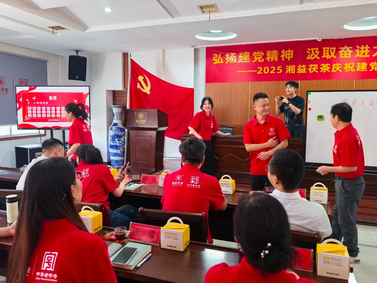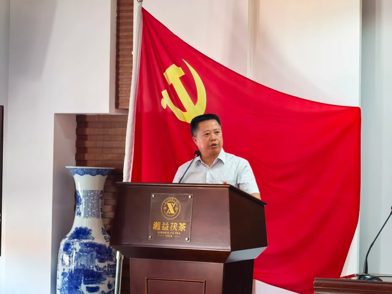 活動(dòng)尾聲,公司總經(jīng)理余智勇的講話擲地有聲:"同志們,新時(shí)代的號(hào)角已經(jīng)吹響。讓我們以逢山開路、遇水搭橋的闖勁,以越是艱險(xiǎn)越向前的拼勁,共同書寫湘益茯茶新的輝煌篇章!"這番話語猶如戰(zhàn)鼓催征,激勵(lì)著每一位黨員以更加昂揚(yáng)的姿態(tài)投身企業(yè)發(fā)展。